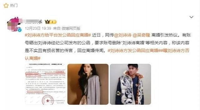 就在前段时间,刘诗诗和吴奇隆的离婚传闻也在网上疯传。当时他们没有对此做出任何积极的回应,但他们用实际行动证明了他们的感情仍然特别甜蜜和相爱。刘诗诗还向一家企业发出公函,要求删除“刘诗诗离婚”、“刘诗诗的脸变了”等相关内容,而吴奇隆则是戴着婚戒外出。