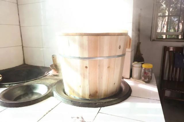 第二步:等待大火烧开水,放入蒸桶,等待米饭蒸熟后盛出。