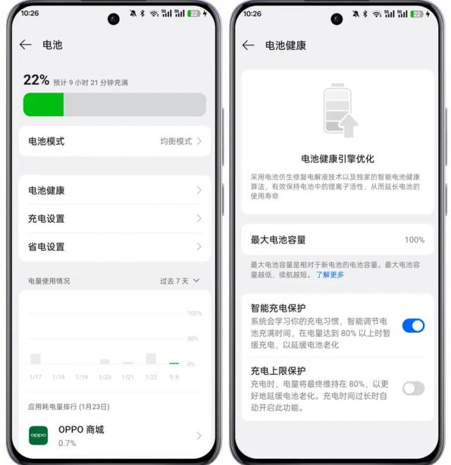 最大的电池电量,体现了当前电池老化水平,为电池回收或更换决策提供了依据。80% 上述电池健康程度是一种较好的体验值。,低于这个值也可以正常使用,但是为了你的体验,建议去服务中心检查一下。如果您的手机在保修期内没有外力损坏,可以免费更换。