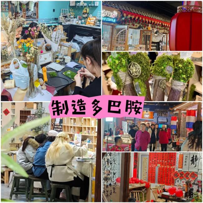 “我想做这样的手镯。老板,你觉得你能给我存一个吗?另外,我的孩子想做紫水晶法术手杖。”二楼的一家手工店,上面覆盖着各种各样的水晶、珍珠、玛瑙和萤石。“珍珠气息”夹杂着“法术气息”,让人眼花缭乱。据店主介绍,到了年底,很多人自己设计手镯,准备香水和香薰,送给亲朋好友作为礼物,表达祝福。