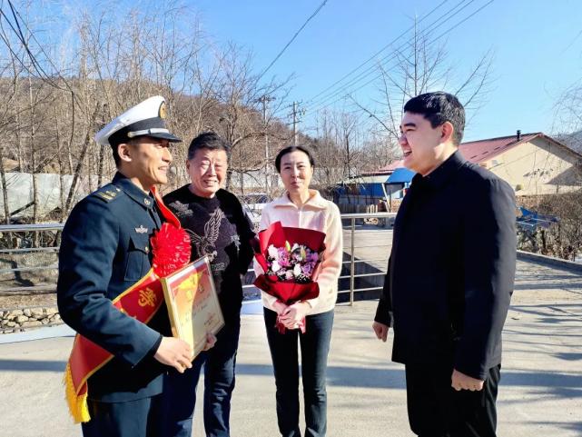 1月23日,海军某部门代表和元宝区相关人员来到现役军人、三等英雄于志强家中,送上立功喜讯、立功奖励和新年祝福。