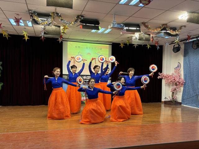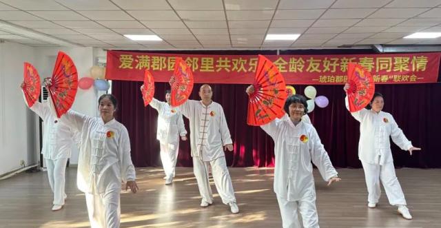 由居委文艺骨干精心安排,团队成员全心全意投入的节目轮流登台,令人眼花缭乱。走秀队惊艳亮相,队员们气场强大,步履铿锵,举止端庄;吹管的表演和鼓的表演充满了活力,动感的音符瞬间点燃了现场的气氛;歌唱队的合唱充满了激情和真挚的情感,充满了对美好生活的向往;舞蹈队的舞蹈优美、婀娜、充满活力,传递着自信和昂扬的力量;太极队的表演刚柔相济,行云流水,一招一式尽显宁静而深远的韵味;共建单位和居民的独唱更是各具特色,余音绕梁。在舞蹈队“火凤凰”的热烈舞蹈中,联欢会圆满落幕,生动地诠释了 "爱满郡园 全龄友善" 人文精神。