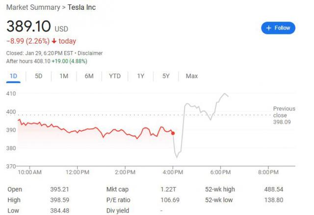 特斯拉四季报全面低于预期,预计今年汽车业务将有所增长,盘后先跌后涨。