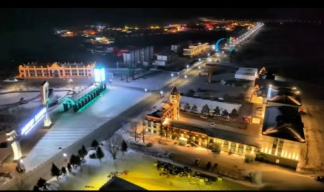 在亚布力西站,灯火通明的车站和繁忙的客流预示着这片冰雪之地即将迎来一场盛大的体育赛事。亚雪公路,一条连接亚布力和周边地区的交通干道,在灯光的点缀下也更加干净整洁。沿途的青山村,灯火通明,充满了浓厚的节日气氛。