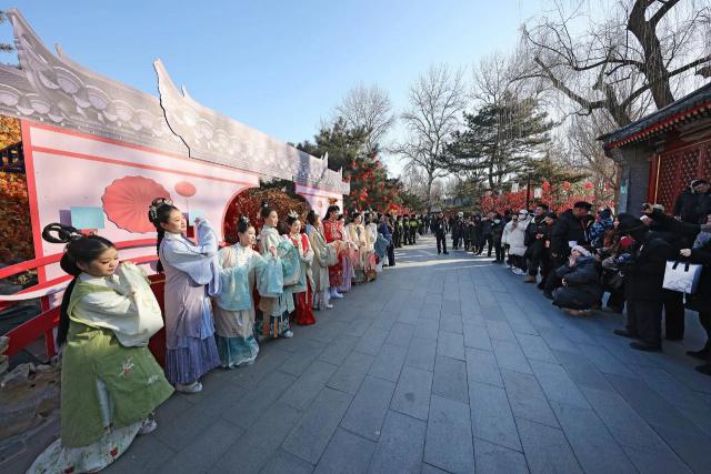 大年初一,许多游客来到大年初一大观园红楼文化庙会,化身贾府“梦客”,感受“红楼梦”中的新年景象,互动体验北京大观园红楼文化庙会,动静结合。