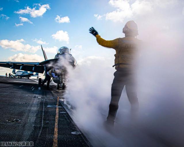 EA-18G “咆哮者”电子战斗机弹射起飞的瞬间。需要注意的是,航母飞行甲板极其危险,所有人员都需要高度注意,很快就会疲劳。