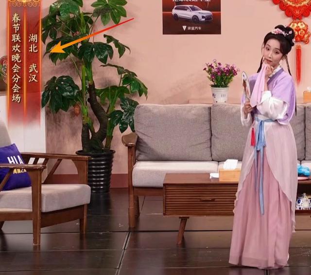 镜头都是从湖北分会场切到会场的小品《点点关注》。湖北分会场旁边的字幕还没有去掉,差点以为这场演出是在湖北分会场。
