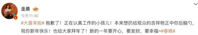 没有,晚会一开始金晨就把手中的吉祥物扔了出去,扔了就扔了,毕竟很多明星都扔了。