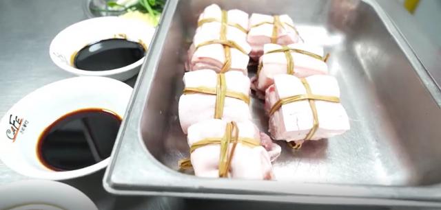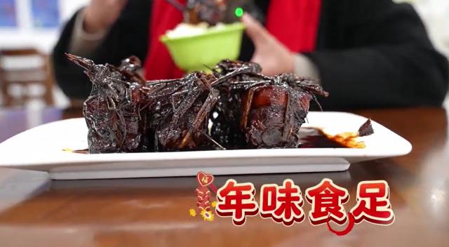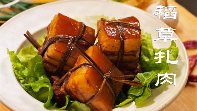 稻草肉是团圆饭桌上的主角,香而不腻,干而不柴是这道菜的根本。闵华说,稻草肉应该用有骨头的五花肉来烹饪。在制作过程中,要注意温度的掌握。其次,选择优质的稻草,用“十”字绑五花肉,焯水除腥。