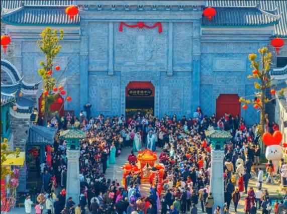 作为一个受欢迎的文化旅游景点,大年初一吸引了大量游客打卡。景区人头攒动,到处都是欢乐的节日气氛。截至下午4点,景区当天人流量已超过5万。
