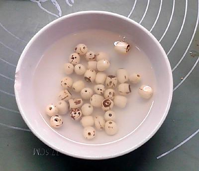 2、将莲子洗净,加入能刚过莲子的清水。