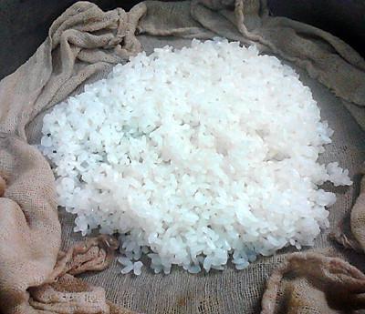 7、将浸泡好的大米放入沸腾的蒸锅蒸锅中,大火蒸约。 15-20 分钟。