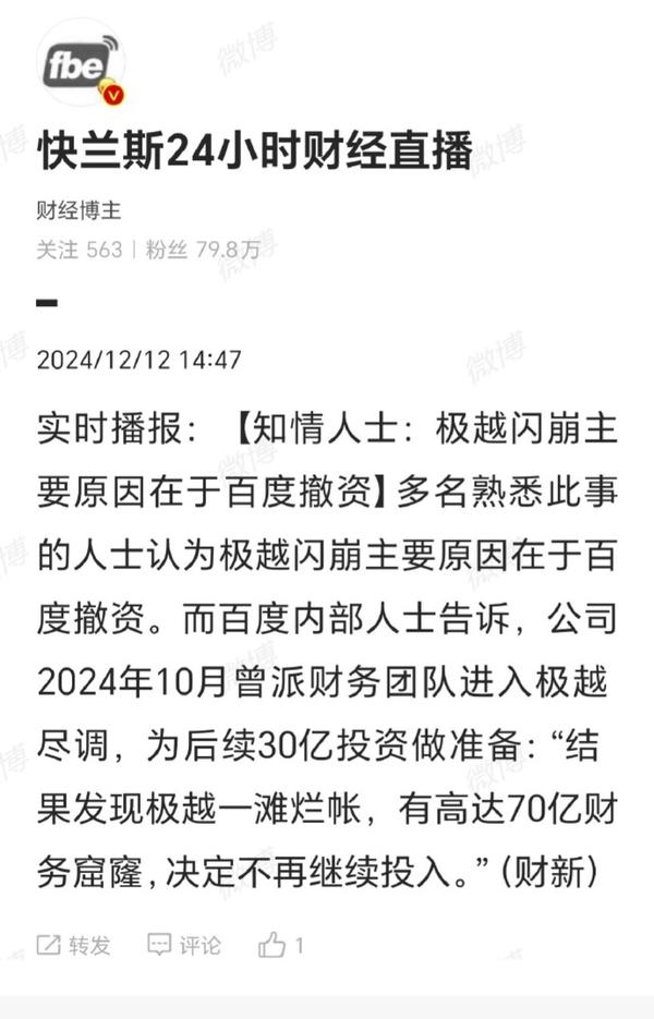 外界认为,极越汽车一夜之间「倒台」,主要原因是投资者百度的撤资。在这种情况下,极越汽车 CEO 夏一平主要负责。