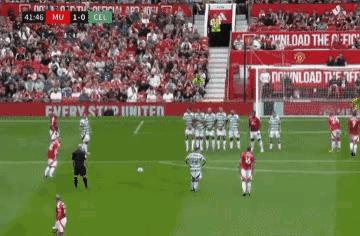 前半场 42 几分钟后,鲁尼主罚禁区外左边的任意球。几步助跑后,他的右腿移出了一个完美的弧形球挂盲点。凯尔特人门将博鲁茨没有回应,看着球叹了口气。