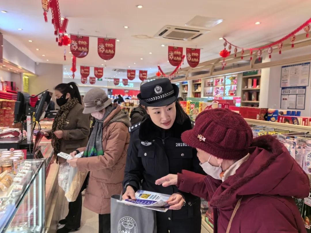 侦查大队九大队民警利用群众放假回家的机会,走进市场,走进商场,进行防范电信网络诈骗的教育宣传。通过发放传单,讲解最近的经典案例,他们可以接受、感动和接受案例,有效增强人们的安全意识,让人们安全地庆祝新年。
