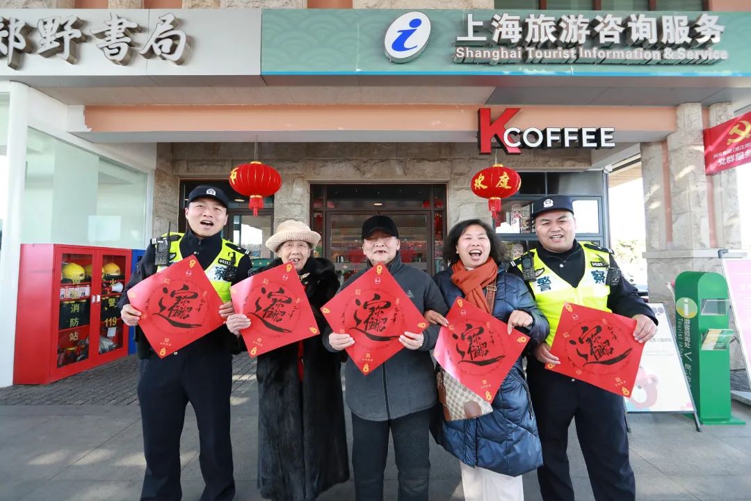 在浦江郊野公园门口按下快门,“结合宣传”的警察和游客们一起定格了美好的瞬间。
