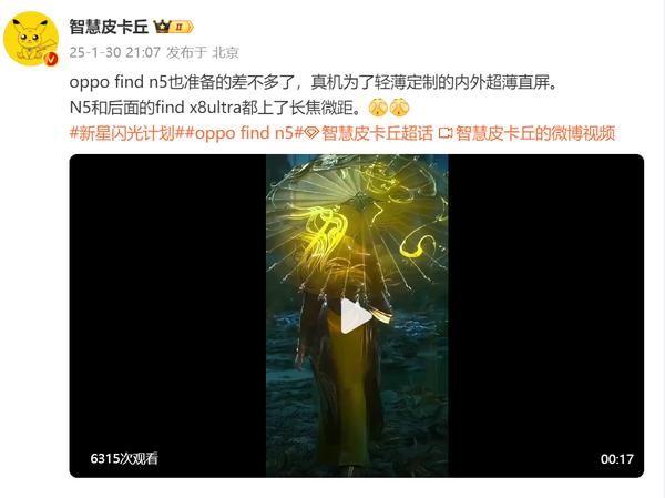 【CNMO 目前可以确定的技术新闻是,OPPO Find N5 将在 2 月发布,将成为 2025 2008年农历春节后,中国手机行业首次推出国产旗舰级大折叠手机。最近,有数字博主透露,OPPO Find N5 准备工作已经接近完成,该型号专门为轻薄感觉定制了内外超薄直屏。值得注意的是,OPPO Find N5 以及后续的 Find X8 Ultra 将配备长焦微距镜头。