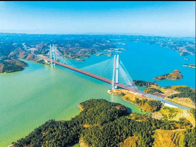 中国交通集团承建的十淅高速丹江口水库特大桥位于中国南水北调中线工程水源地、国家一级水源保护区、中国重要湿地保护区丹江口水库。为了修复“致富之路”,做一个“守井人”,大桥选择通过“仓库”的方式,总长 1076 米,主跨达 760 米饭,是世界上最大跨度部分锚式混合梁斜拉桥。十淅高速通车后,三峡库区、丹江口库区、神农架、武当山、河南洛阳老君山等世界自然遗产将串联起来。 5 大型旅游景点,在改善区域高速公路网络布局、促进沿线地区经济社会发展等方面发挥着重要作用。