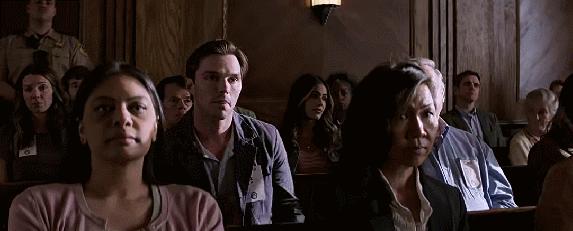 与此同时,在审判席对面的陪审团中,男主贾斯汀的脸色渐渐惊慌失措。