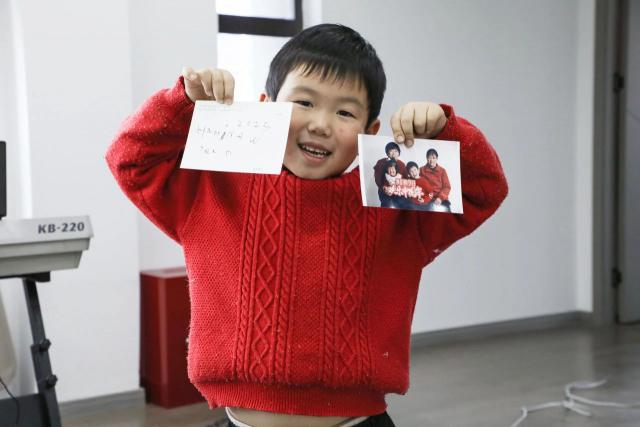 拍摄结束后,孩子们把新年的愿望和对爸爸妈妈的祝福写在名片上,稚嫩的手和可爱的笑容组成了新年最真挚的祝福。