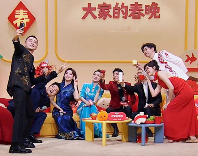 与此同时,舞台的另一边,是齐思钧主持的《大家的春晚》采访了每一位刚刚从央视春晚出来的嘉宾。