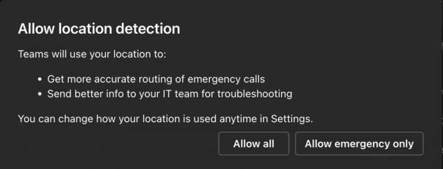 更新前,位置访问限制仅在操作系统等级管理;更新后,除了操作系统等级,客户还必须在 Teams 应用程序内授权位置访问限制,将赋予用户更精确的位置数据控制权。