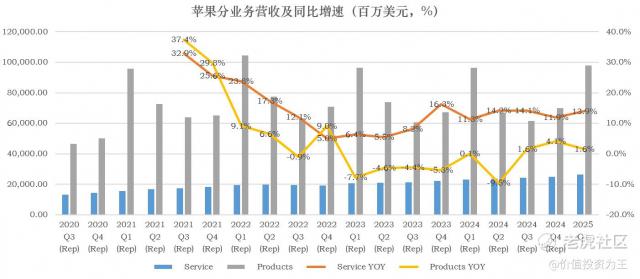 就业务而言,苹果一季度硬件产品的收入 979.6 亿,同比增长 1.6%,略低于分析师的预期。 980 十亿;服务业务收入 263 亿,同比增长 13.9%,略高于分析师的期望。 261 亿: