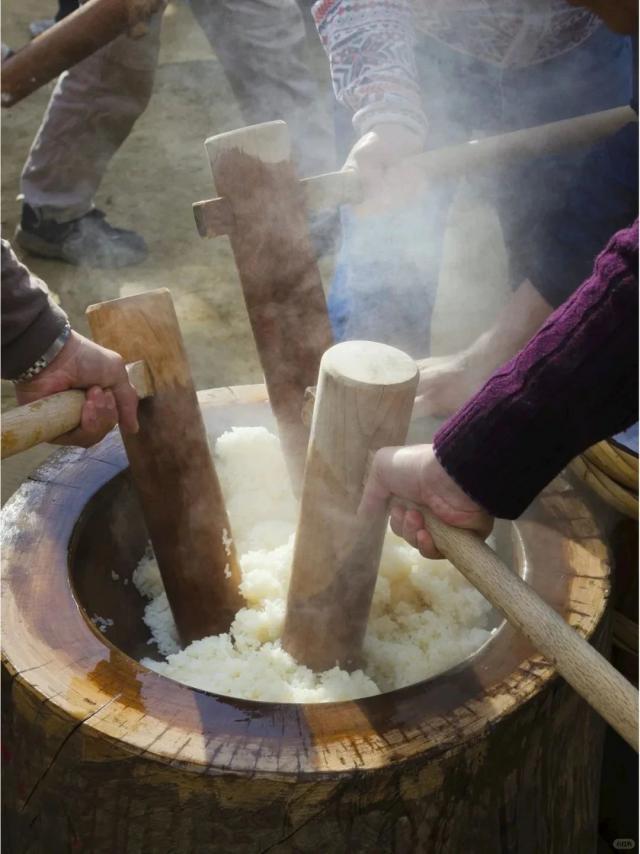 与诱饵块不同,糯米是用糯米做的。先将糯米蒸熟,放入石臼中,再用木杵反复打。在大米恢复之前,它被“粉碎”了。