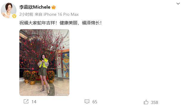 在自己的个人社交账号上,李嘉欣晒出了自己的新年照片,并配文道:“祝大家蛇年吉祥,健康美容,福泽长。”
