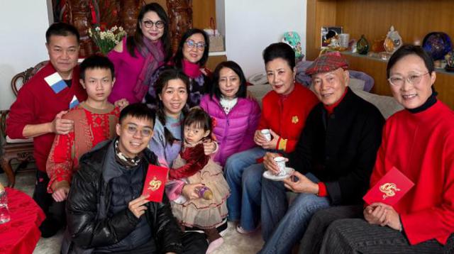 年轻一代给汪明荃夫妇喝茶打招呼,拿着丰厚的红包笑着开花。大家庭在汪明荃宽阔的豪宅屋顶上热闹地吃着大坝席。这一年的味道很浓。