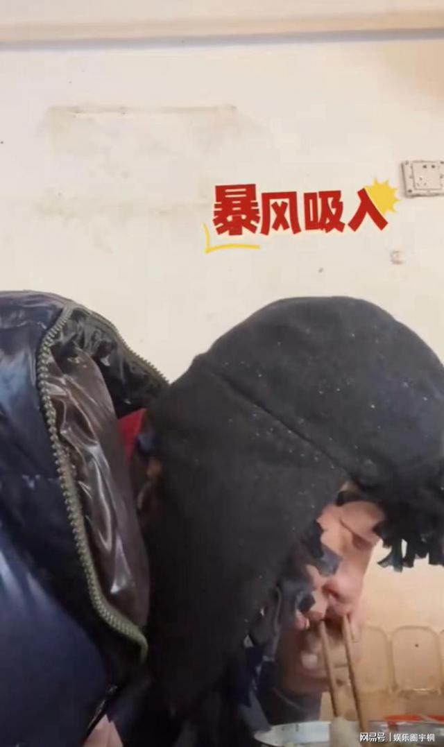 结婚后,李亚鹏第一次陪妻子回娘家过年,路边摊吃粉,头上的“乞丐帽”抢镜