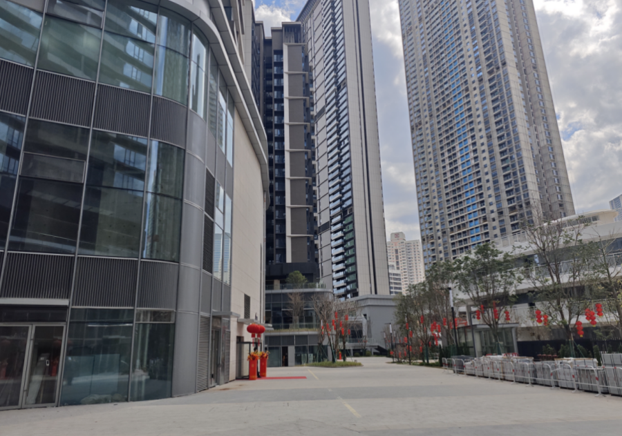 1月21日,《国家商报》记者来到项目现场时,花会活动正在商场外围举行。沿街的一些商业商店已经开业,但商场的大门仍然锁着。房子的一部分已经挂上了红灯笼,入口处“祝你回家”的字样格外显眼。