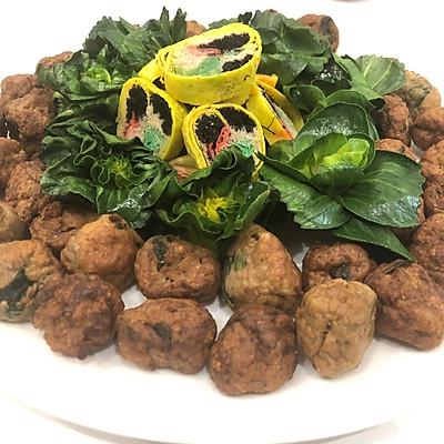 #做川菜用豪吉#肉丸蛋卷上海青菜摆盘