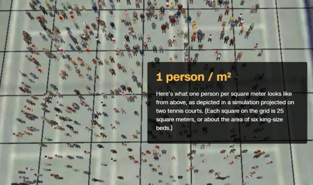 每平方米的群体数量一旦达到 5 个体以上,任何拥挤的地方都会变得危险。