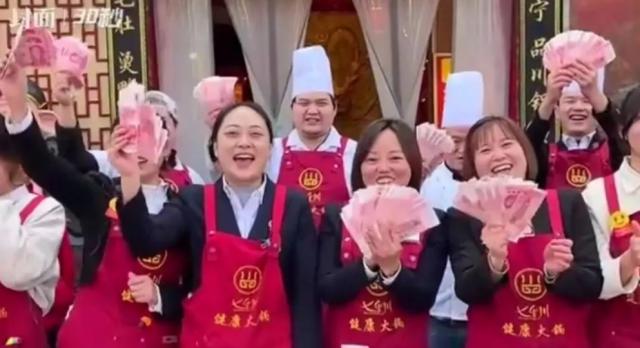 四川遂宁七里川火锅店又火了,老板把除夕到二年级。 3 天净赚的 53.2 一万元全部发给员工,最多一个店长拿走了。 17900 人民币,普通员工平均也有 3600 元。