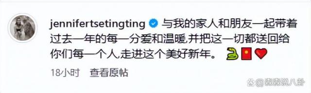 谢婷婷在一篇文章中说,他珍惜过去一年与家人和朋友的每一份爱和温暖,并在这个美好的新年里把这一切都给你们每一个人。