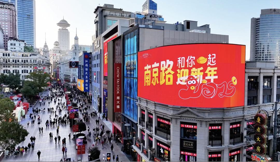 今年南京东路,传统文化元素的融合,让节日气氛更加浓厚,仿佛开启了一场全新的非物质文化遗产大会。上海南京东路商业街早已蒸蒸日上,热闹非凡,街区成了欢乐的海洋。