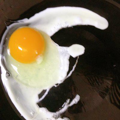 1、锅加热后放油,打入鸡蛋炒至蛋液凝结。