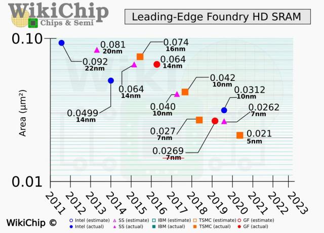 而当时英子的多重曝光技术的确在晶体管密度上比对手强,比如他们的 14nm (晶体管密度 44.67MTr/mm ²)可以和三星相比 10nm ( 51.82MTr/mm ²), 10nm (晶体管密度 100.76MTr/mm ²)可以与台积电进行比较 7nm ( 91.2MTr/mm ²)。
