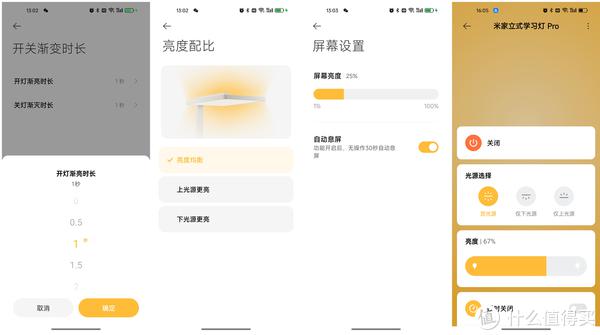 开关、开启集中模式、变光功能可以通过点击、双击、旋转等操作实现。随便说一下,米家立式学习灯 Pro 开关灯是渐进的,并且可以调节时间;灯光慢慢亮起,慢慢熄灭,我们的眼睛更容易适应。