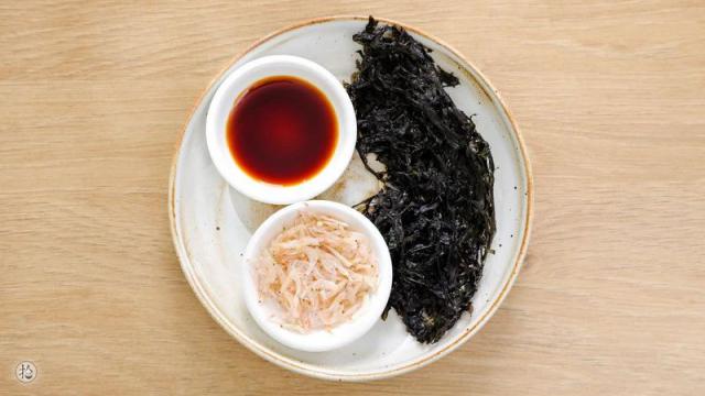 用热水浸泡少量洋葱和姜丝。 10 分钟,