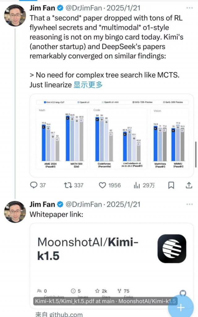 英伟达 AI 科学家 Jim Fan 第一时间发帖总结两种模式的相似性,感觉两者都简化了加强学习框架,同时提高了推理性能和效率,评价了两家公司发表的技术论文,都可以称之为“沉重”的水平。