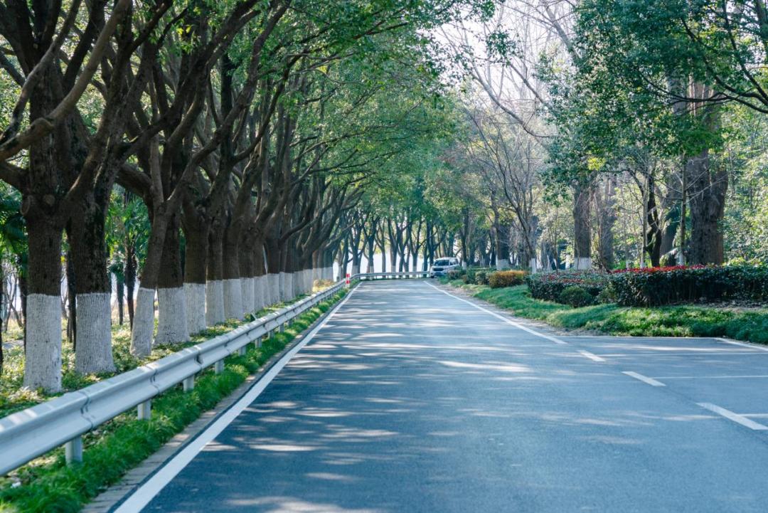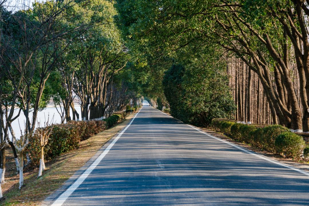 在林荫道上骑自行车,整个过程几乎被茂密的树木覆盖,车辆稀缺,骑自行车感觉极其舒适。在晴朗的天气里,穿梭在树影之间,一边是波光粼粼的太浦河,另一边是林荫道上斑驳的光影,让人心旷神怡,仿佛身心瞬间伸展。