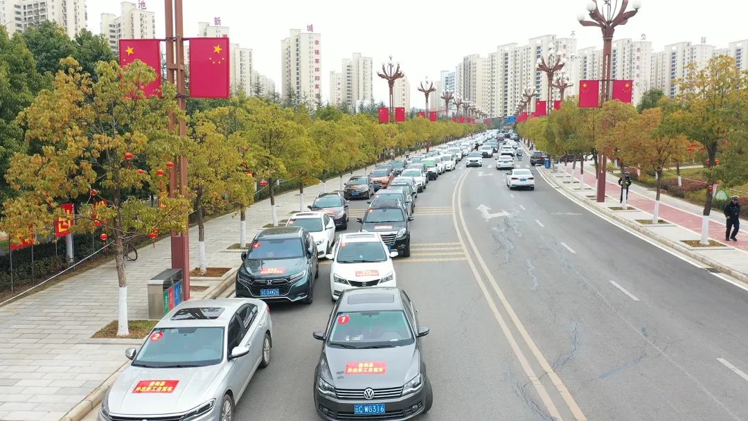 第一批3356名昭通鲁甸工人集中驾车返岗。
