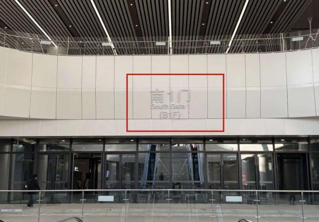 乘客们沿着扶梯前去 B1 层,步入南 1 门,沿着地面显眼的标志行走到出租车上客点。