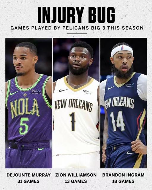 鹈鹕队可以说是本赛季受伤最严重的球队之一,本赛季以来,他们的许多核心球队都在不断地受伤。这个赛季锡安只打了 13 在这场比赛中,英格拉姆也只在这里打球。 18 在一场比赛中,球队的另一个核心穆雷在早期遭受了新的伤病。鹈鹕官方宣布,球队后卫穆雷被诊断为跟腱断裂赛季报销。这已经不是穆雷职业生涯第一次受重伤了。在此之前,他被右膝前的十字韧带撕裂,然后缺席。 18~19 这个赛季的所有比赛,而且这个赛季又是一次重伤。