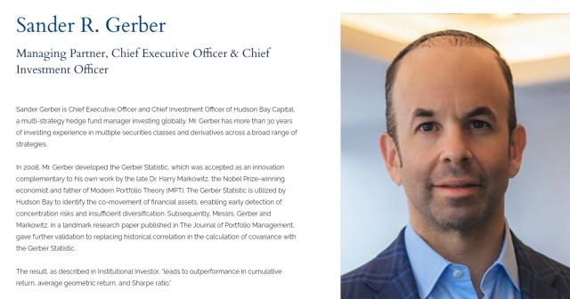 一个创始人 Sander Gerber ——目前担任 Hudson Bay Capital 首席执行官兼首席投资官毕业于宾夕法尼亚大学,获得沃顿商学院经济学学士学位和文理学院人文哲学学士学位。