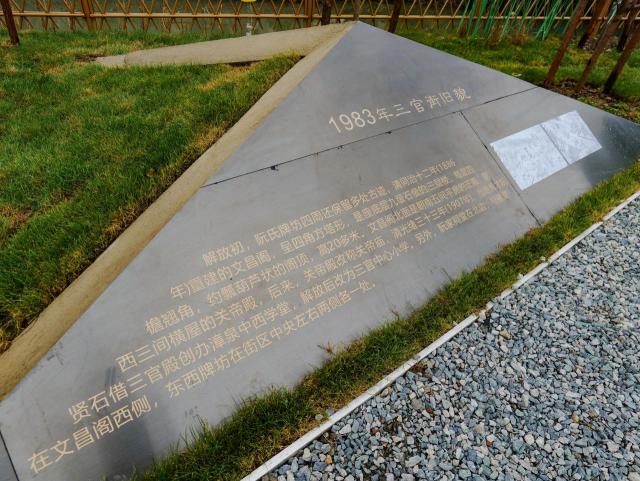 该项目采用石材和深色不锈钢制成大地艺术景墙,展示内容由不同年龄段的三官堂布局图和阮氏牌坊系列文化元素组成,呈现不同时期的三官堂和阮氏牌坊,唤起城市遗忘角落的新生活。