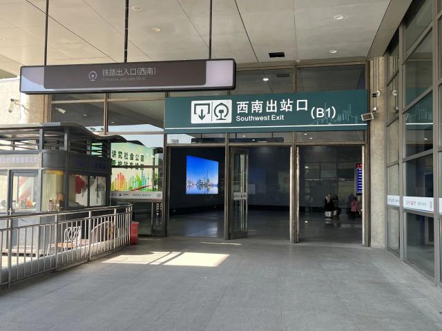 乘客离开南区后,沿着通道行走,可以看到地铁上海松江站的进出口。