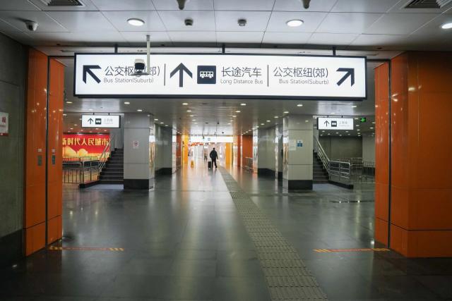 乘坐公共汽车前往南广场公交枢纽(郊区)的旅客可以选择东南部出站口出站,进入南广场地下隧道,按标志行走,上楼至路面,即可到达。南广场公交枢纽(郊区)。